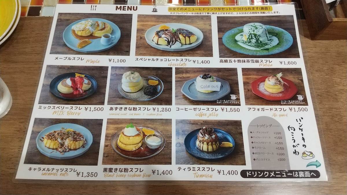At Pancake Nomukougawa, the menu bursts with flavor and freshness. Start your day with a refreshing glass of 100% apple juice at just JP¥400 or quench your thirst with a fizzy melon soda, also priced at JP¥400. But don’t miss out on their signature Espresso Mocha shake, a delightful blend available for JP¥550 that will awaken your senses and delight your taste buds!